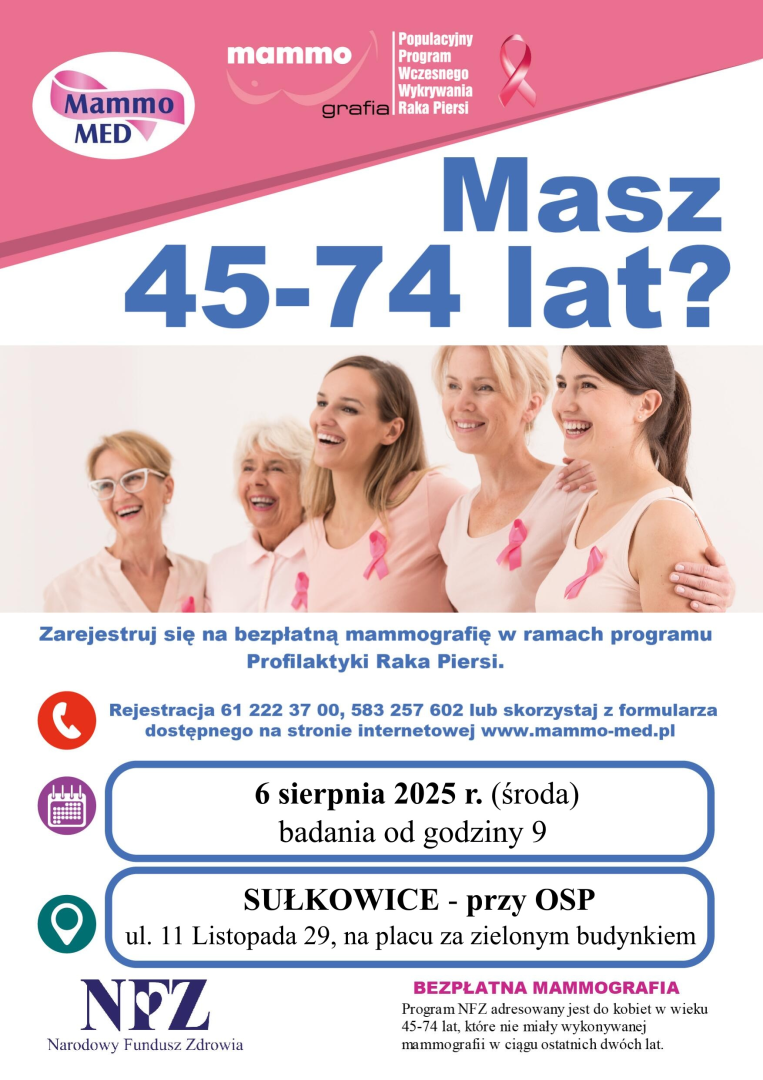 Badania mammograficzne - 6 sierpnia 2025 r.