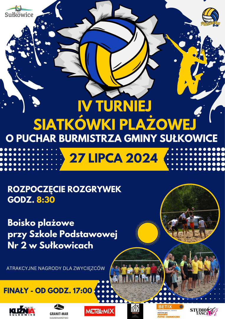 Zapraszamy serdecznie na IV Turniej Siatkówki Plażowej o puchar Burmistrza Gminy Sułkowice, który odbędzie się w najbliższą sobotę,