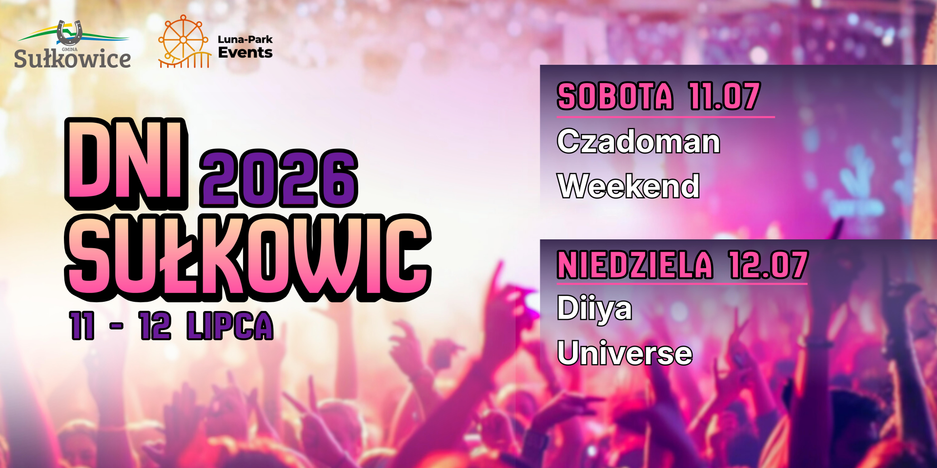 Już 11–12 lipca 2026 r. zapraszamy wszystkich na Dni Sułkowic, które odbędą się na Stadionie KS Gościbia w Sułkowicach. Dwa dni pełne muzyki, dobrej zabawy i świetnej atmosfery!