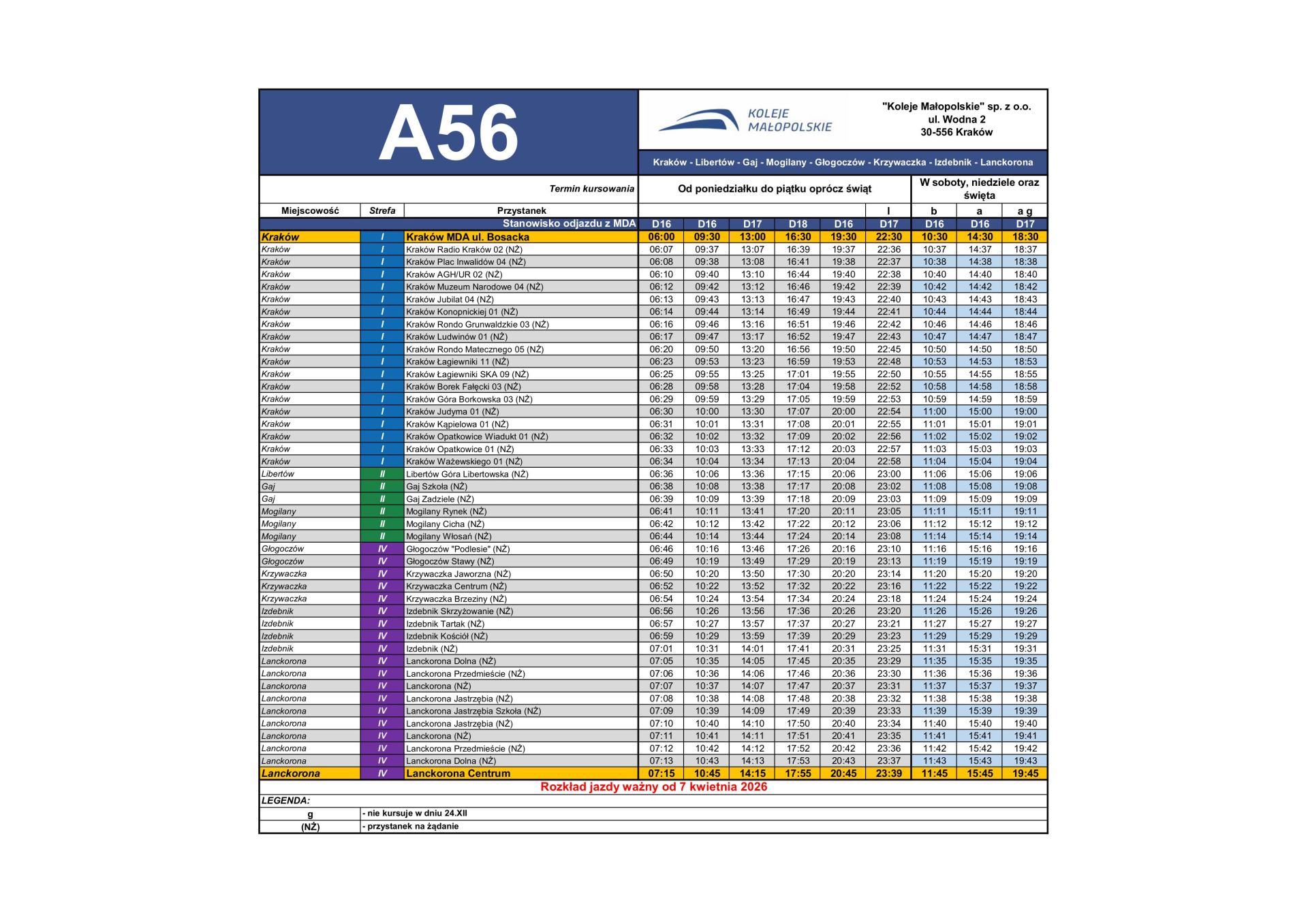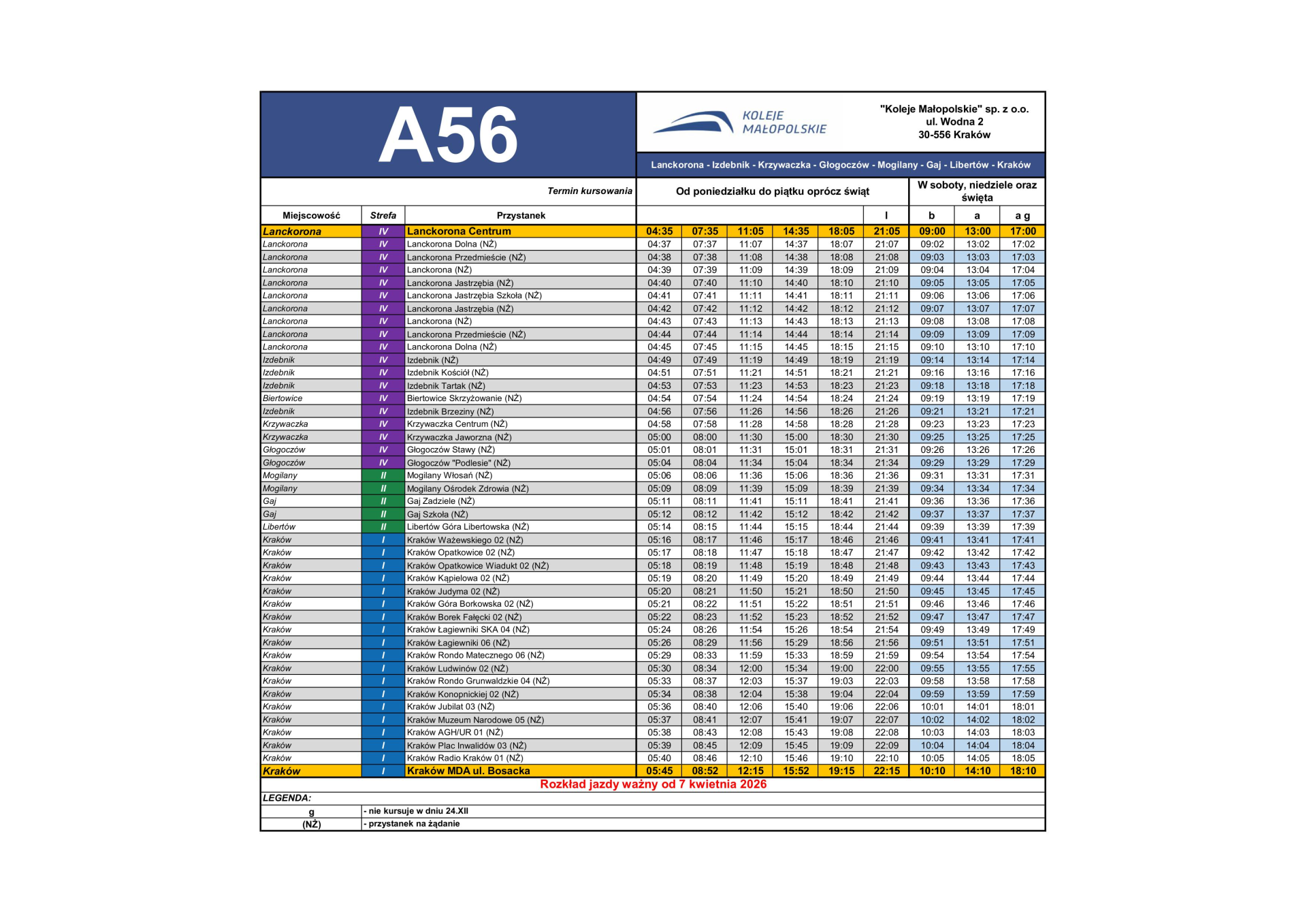 Nowa linia MLD od kwietnia 2026 – A56 - Lanckorona - Kraków