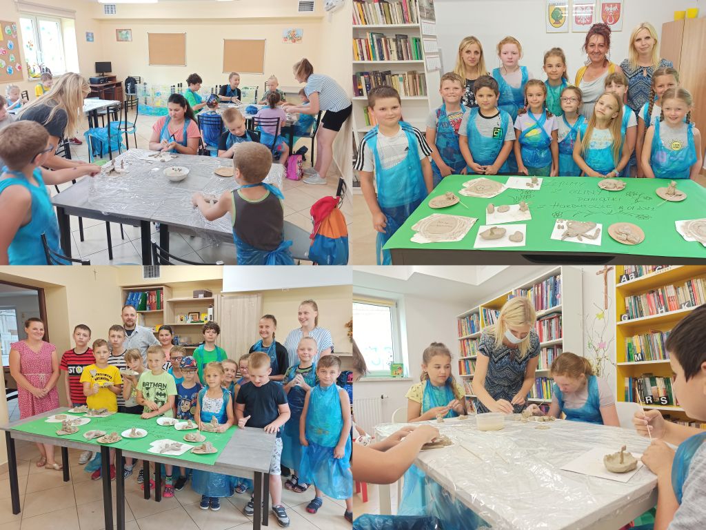 W Izbie Tradycji już na początku wakacji zorganizowaliśmy spotkanie dla wszystkich grup podopiecznych Środowiskowego Domu Samopomocy w Sułkowicach. Końcówka wakacji to spotkania młodych sportowców ze Szkółki Piłkarskiej „Gościbia”. Spotkania przebiegały jak zawsze w miłej i sympatycznej atmosferze. Głównie były to zajęcia organizowane przez naszą bibliotekę w Sułkowicach. Ale nie zabrakło też propozycji dla dzieci z Harbutowic i Krzywaczki, wzięły one udział w zajęciach plastycznych o tematyce lokalnej. Powstały piękne „dzieła”, które dzieci zabrały sobie na pamiątkę do domu.