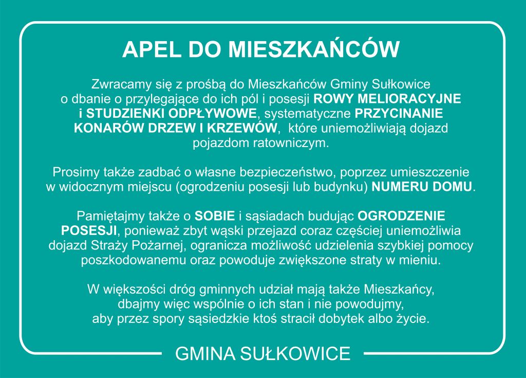 Zwracamy się z prośbą do Mieszkańców Gminy Sułkowice