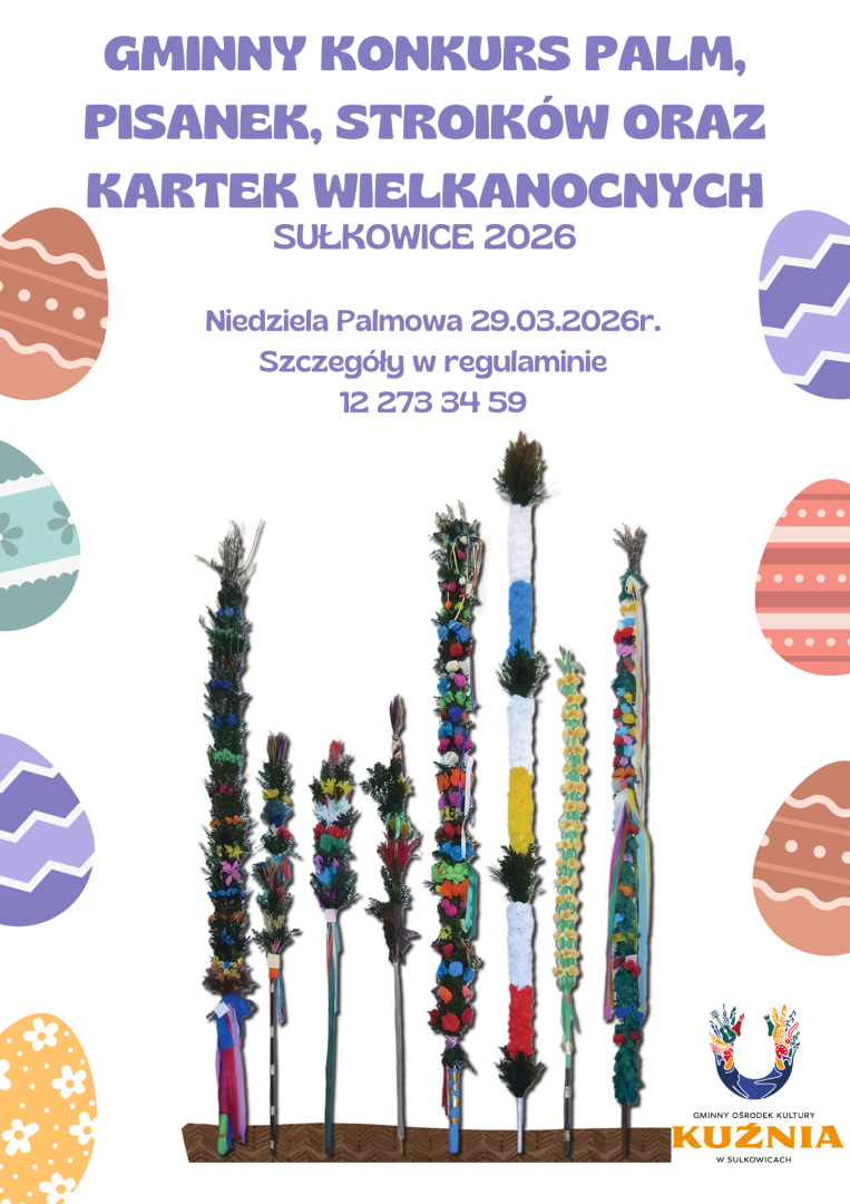 - Gminny konkurs palm, pisanek, stroików oraz kartek wielkanocnych - Niedziela Palmowa 29 marca 2026 r. - więcej informacji na stronie Organizatora: kliknij tutaj