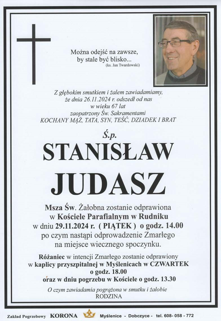 29 listopada o godz. 14:00 pogrzeb Ś.P. Stanisława Judasza