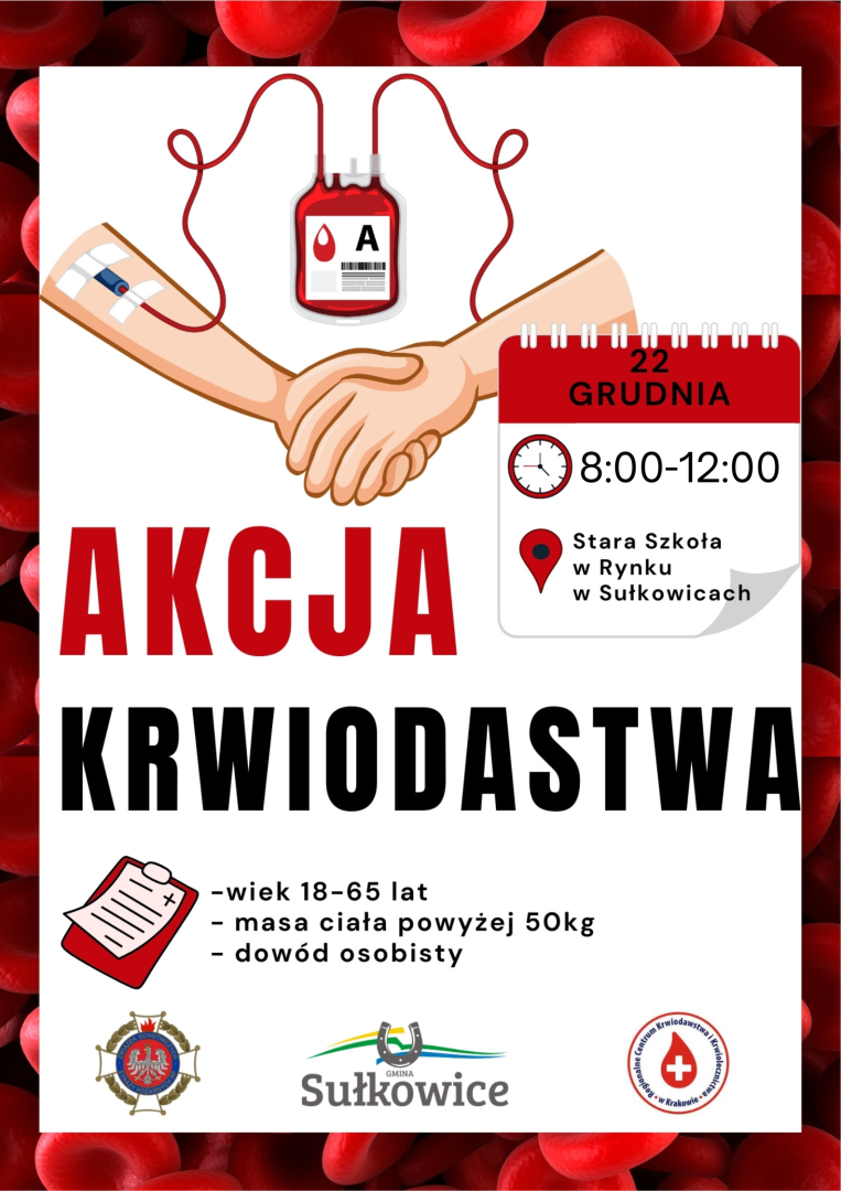 Zapraszamy do udziału w akcji krwiodawstwa w dniu 22 grudnia 2024 r.