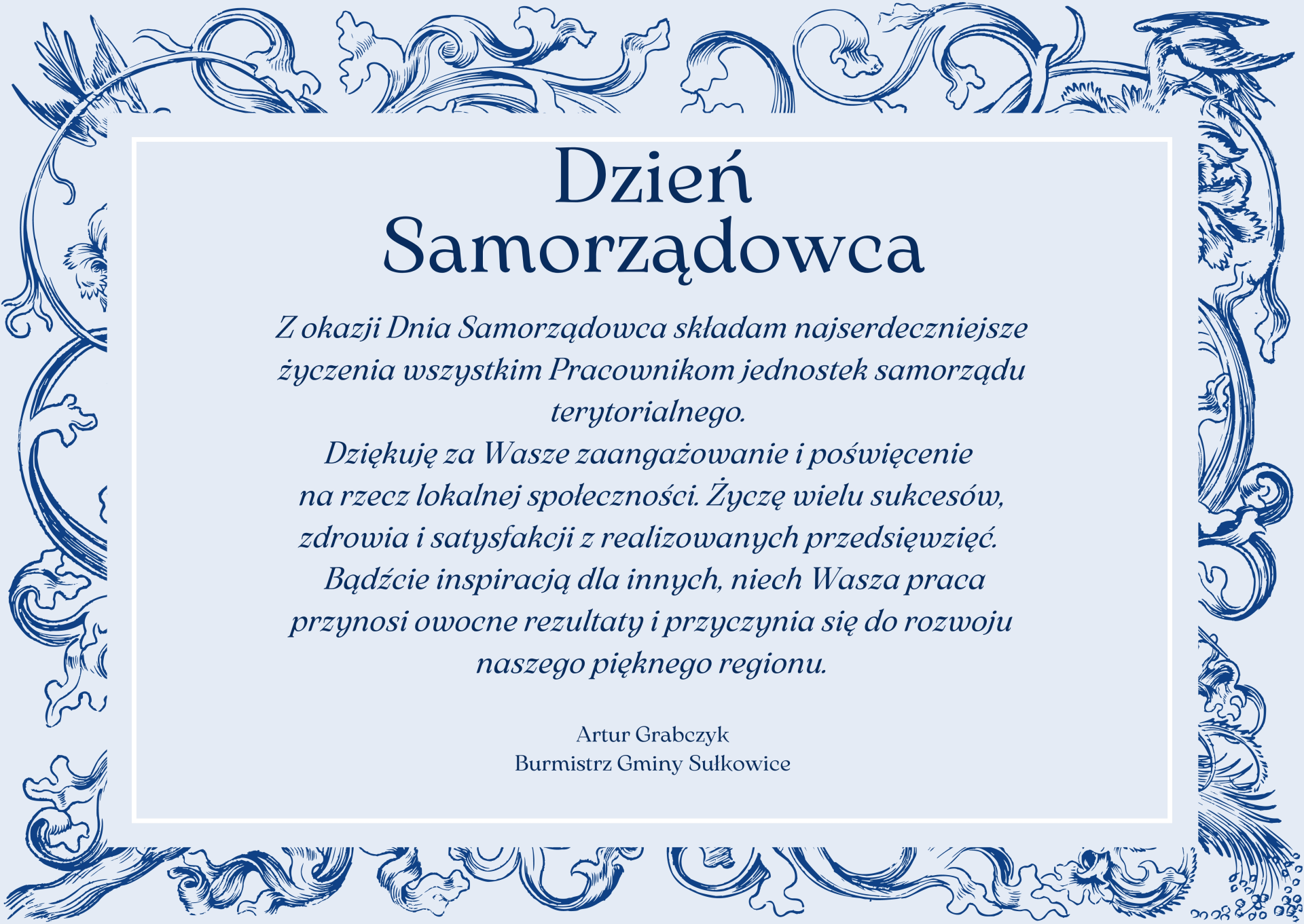 Z okazji Dnia Samorządowca składam najserdeczniejsze życzenia wszystkim Pracownikom jednostek samorządu terytorialnego.