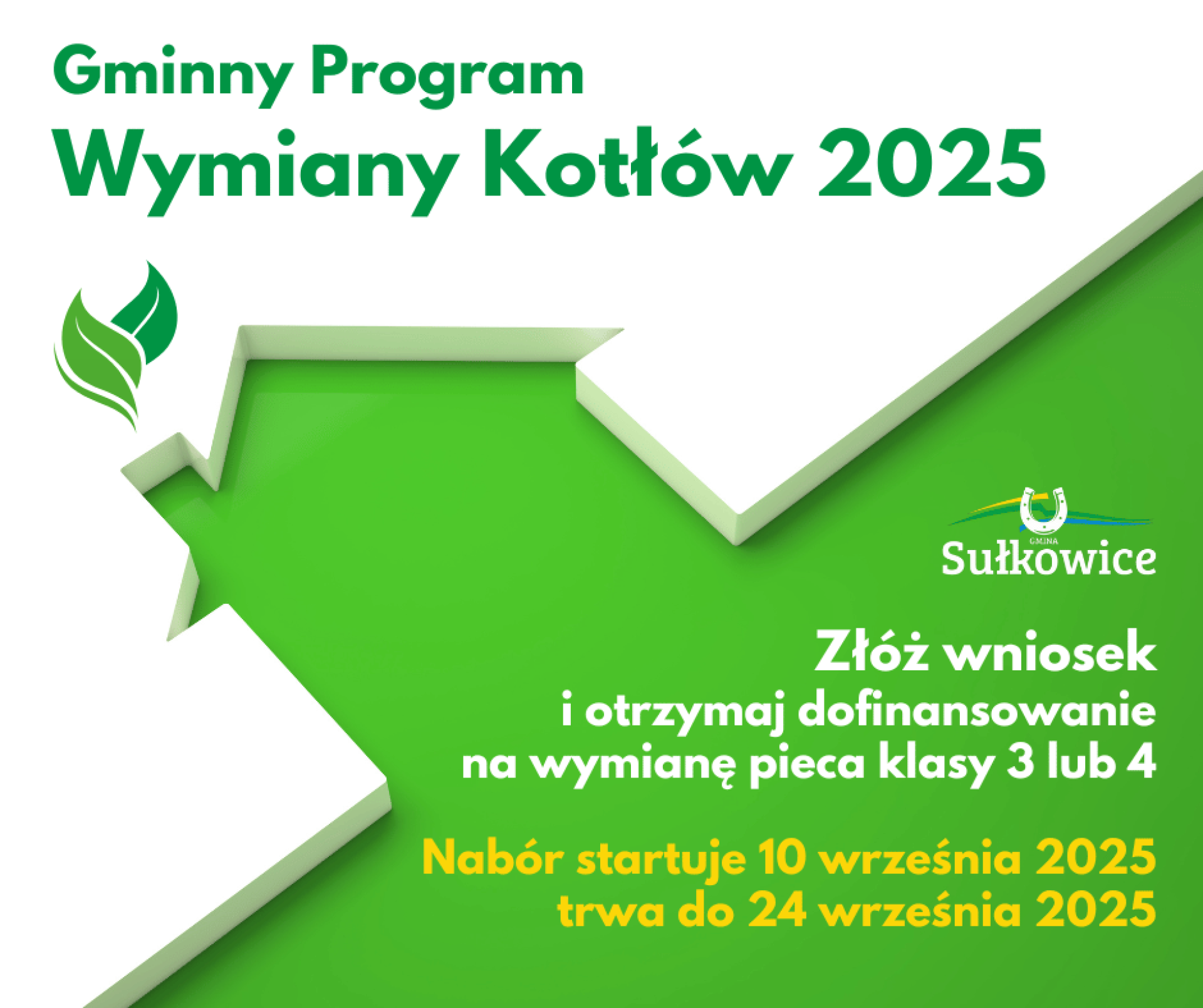 Burmistrz Gminy Sułkowice ogłasza nabór wniosków w ramach Gminnego Programu Wymiany Kotłów na rok 2025
