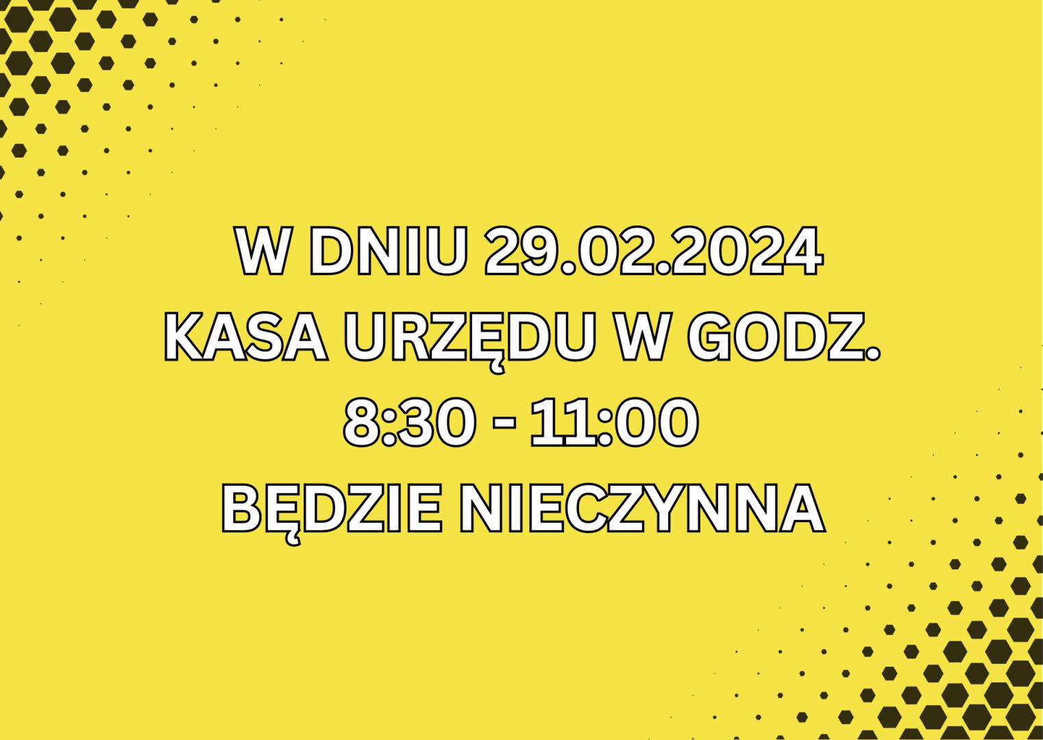 Godziny funkcjonowania Kasy Urzędu w dniu 29.02.2024 r.