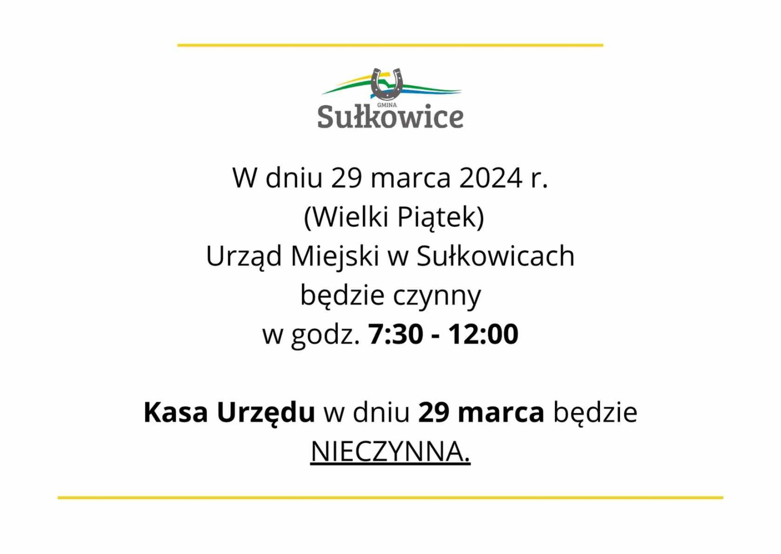 Godziny otwarcia Urzędu Miejskiego w dniu 29 marca br.
