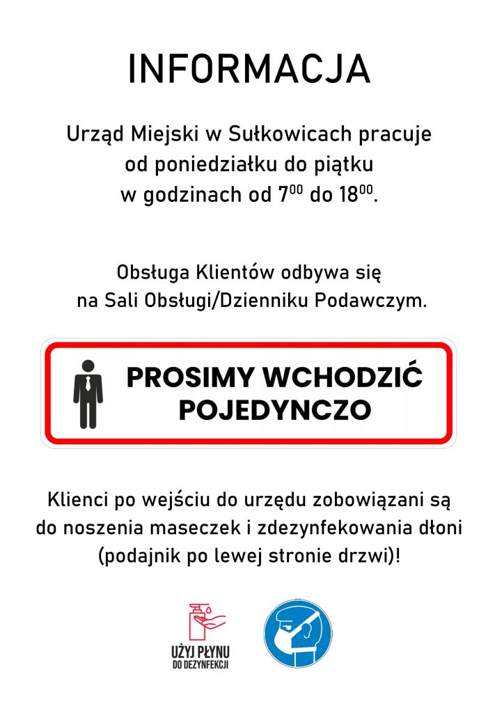 Informacja dot. pracy Urzędu Miejskiego i obługi klientów