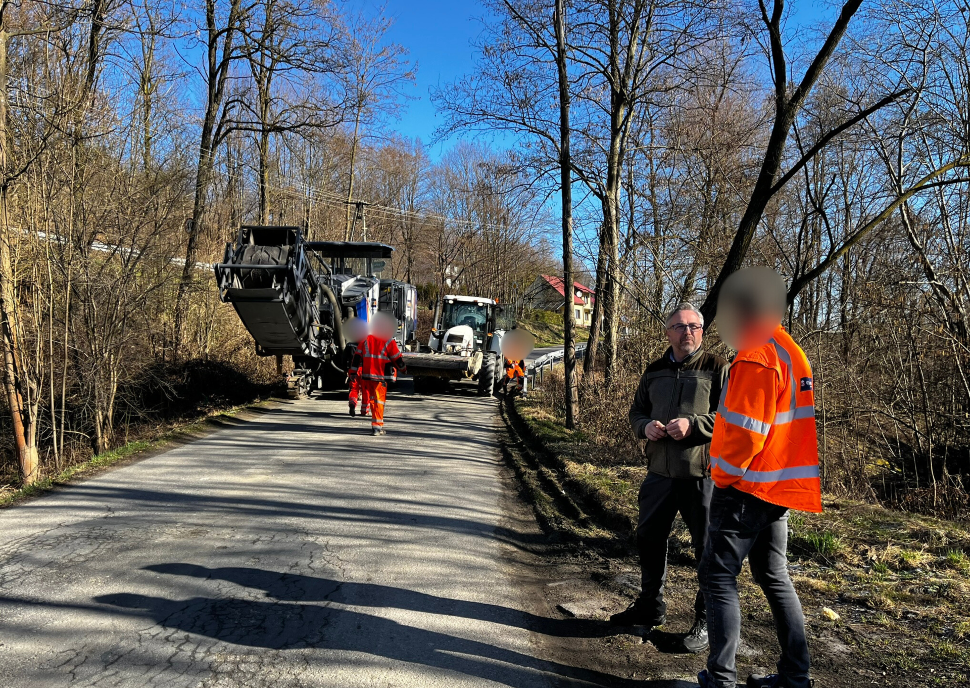 Informujemy, że w dniu dzisiejszym rozpoczęły się prace związane z frezowaniem nawierzchni asfaltowej na drodze zlokalizowanej na działce nr ew. 3492/3 w miejscowości Harbutowice (ul. Górska).