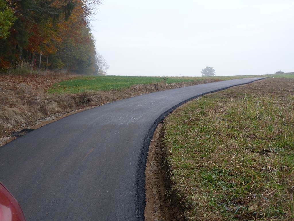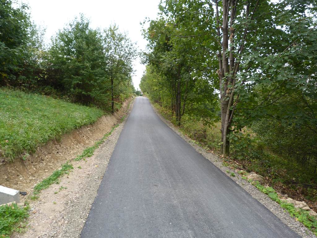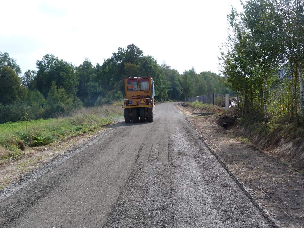 W ramach zadania wymieniono podbudowę tłuczniową wraz z zastosowaniem geowłókniny celem zwiększenie nośności drogi oraz wykonano nawierzchnię z kostki brukowej o dł. 200 m i szerokości 4 m, wraz z wymianą kanalizacji deszczowej.