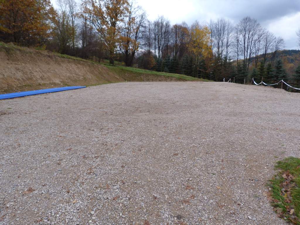 Wykonano parking tłuczniowy o powierzchni 800 m2 przy Centrum Kultury w Krzywaczce wraz z drenażem terenu oraz przepustem betonowym.