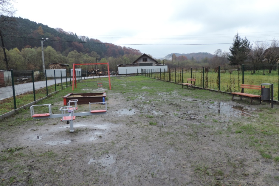 W ramach zadania wykonano ogrodzenie terenu oraz zamontowano piaskownicę, huśtawkę oraz karuzelę. Plac został wyposażony w 2 ławki parkowe. Wartość inwestycji: 27 000,00 zł