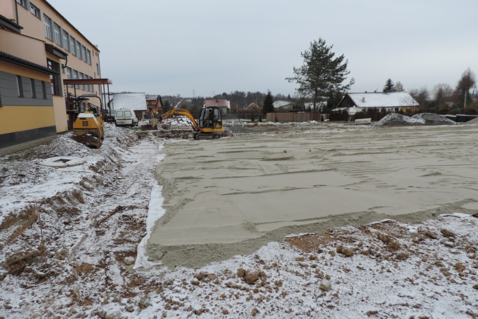 Rozpoczęto budowę boiska do piłki ręcznej o nawierzchni z trawy syntetycznej oraz boiska wielofunkcyjnego o nawierzchni poliuretanowej wraz z drenażem i przebudową kanalizacji opadowej, przebudową kanalizacji sanitarnej oraz zewnętrzne oświetlenie boiska. W zakres inwestycji wchodzi również utwardzenie terenu kostką brukową: opaska wokół boisk, dojście i placyk przed szkołą wraz z rozbiórką starej kostki i płytek. Nakłady finansowe poniesione od początku inwestycji: 19 680,00 zł