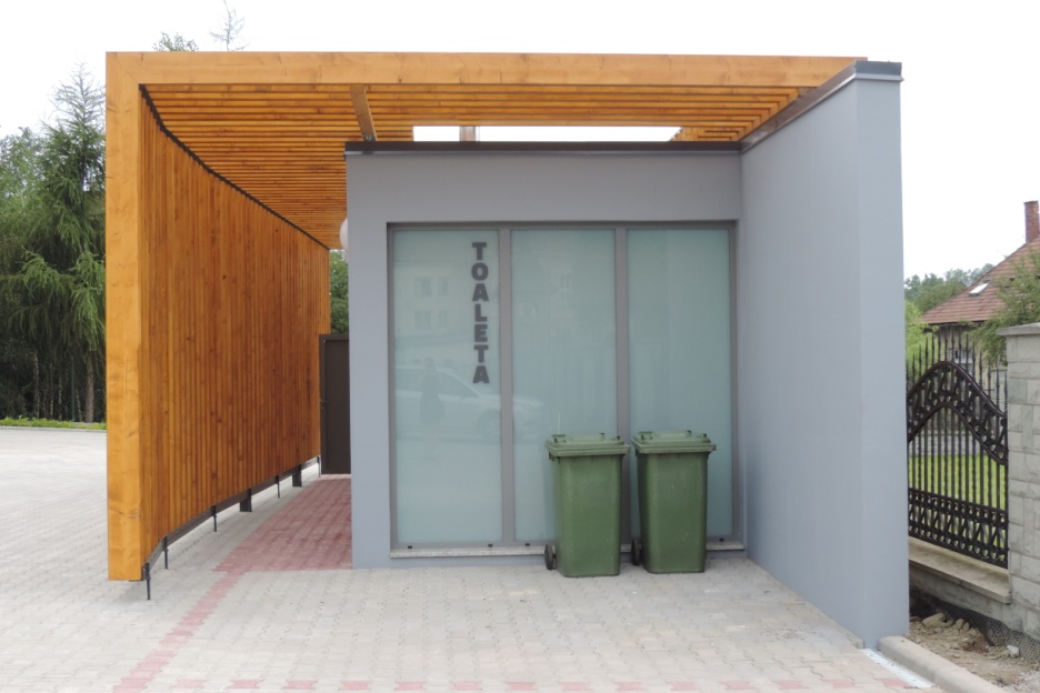 W ramach zadania wykonano dokumentację techniczną, przyłącze wodne, kanalizacyjne oraz energetyczne, a także budynek toalet publicznych o parametrach: powierzchnia zabudowy 34,52 m2, powierzchnia użytkowa 23,06 m2, kubatura 118 m3, wysokości 3,82 m. Wartość inwestycji: 209 840,39 zł