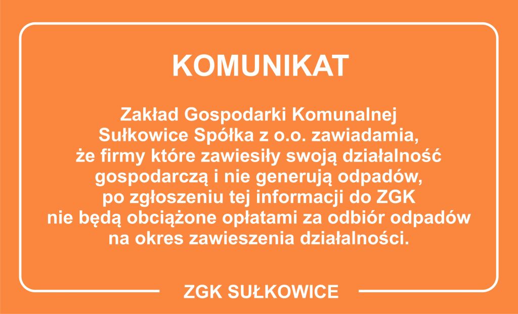 Komunikat Zakładu Gospodarki Komunalnej w Sułkowicach