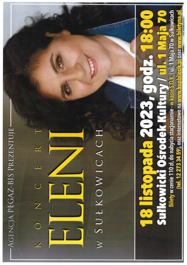 Już 18 listopada br. o godz. 18:00 w Sułkowickim Ośrodku Kultury wystąpi niekwestionowana królowa greckiej piosenki - Eleni.