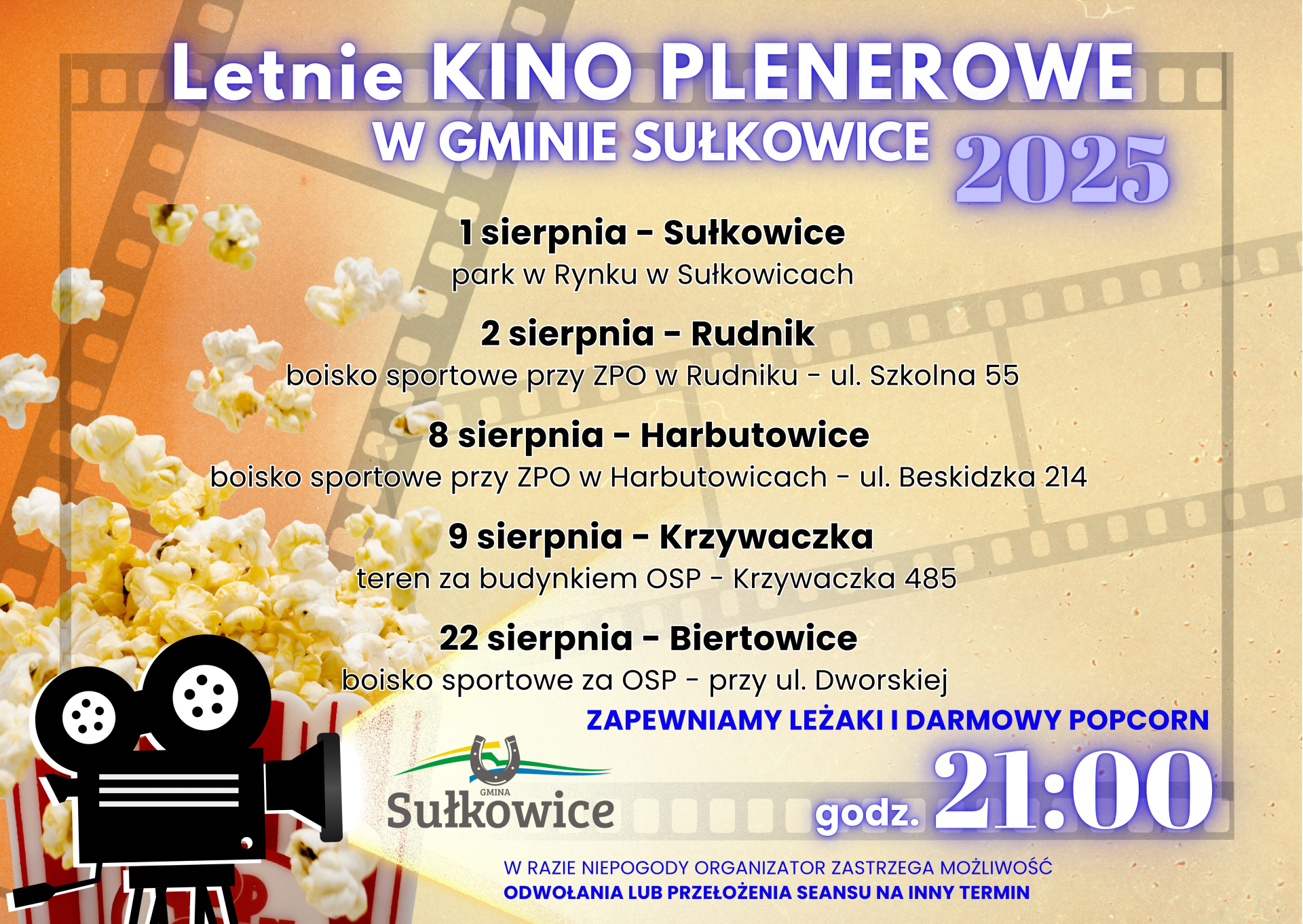 Letnie KINO PLENEROWE 2025 w Gminie Sułkowice