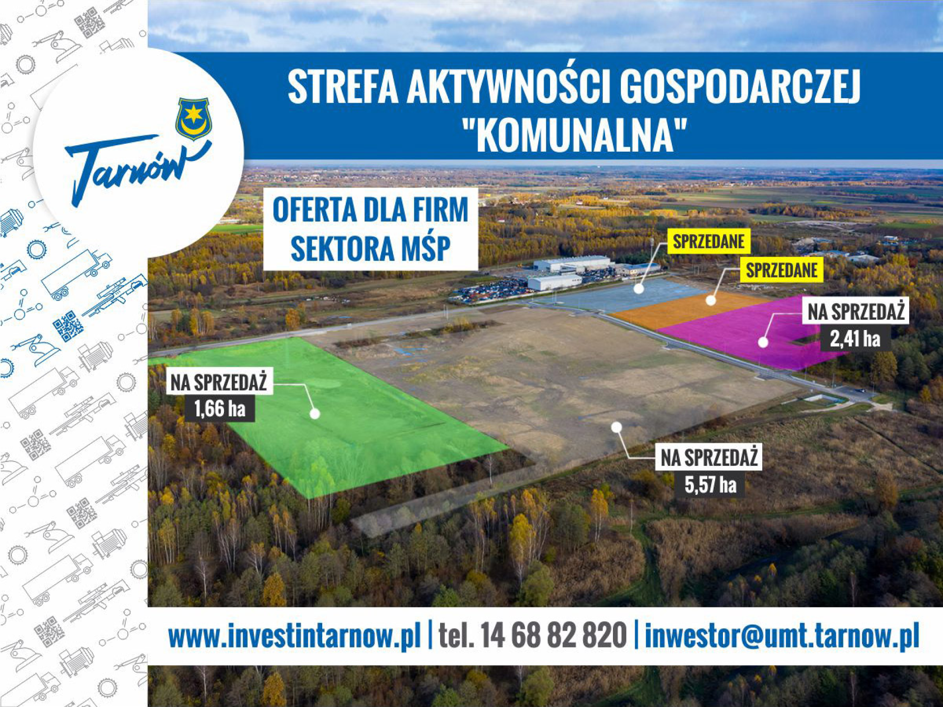 Informujemy, że w Strefie Aktywności Gospodarczej Komunalna w Tarnowie, położonej w pobliżu zjazdu do autostrady A4 w kierunku Krakowa i Rzeszowa, dostępne są atrakcyjne nieruchomości do zagospodarowania. Oferujemy blisko 10 ha terenu przeznaczonego na lokalizację obiektów produkcyjnych, składów, magazynów oraz usług.