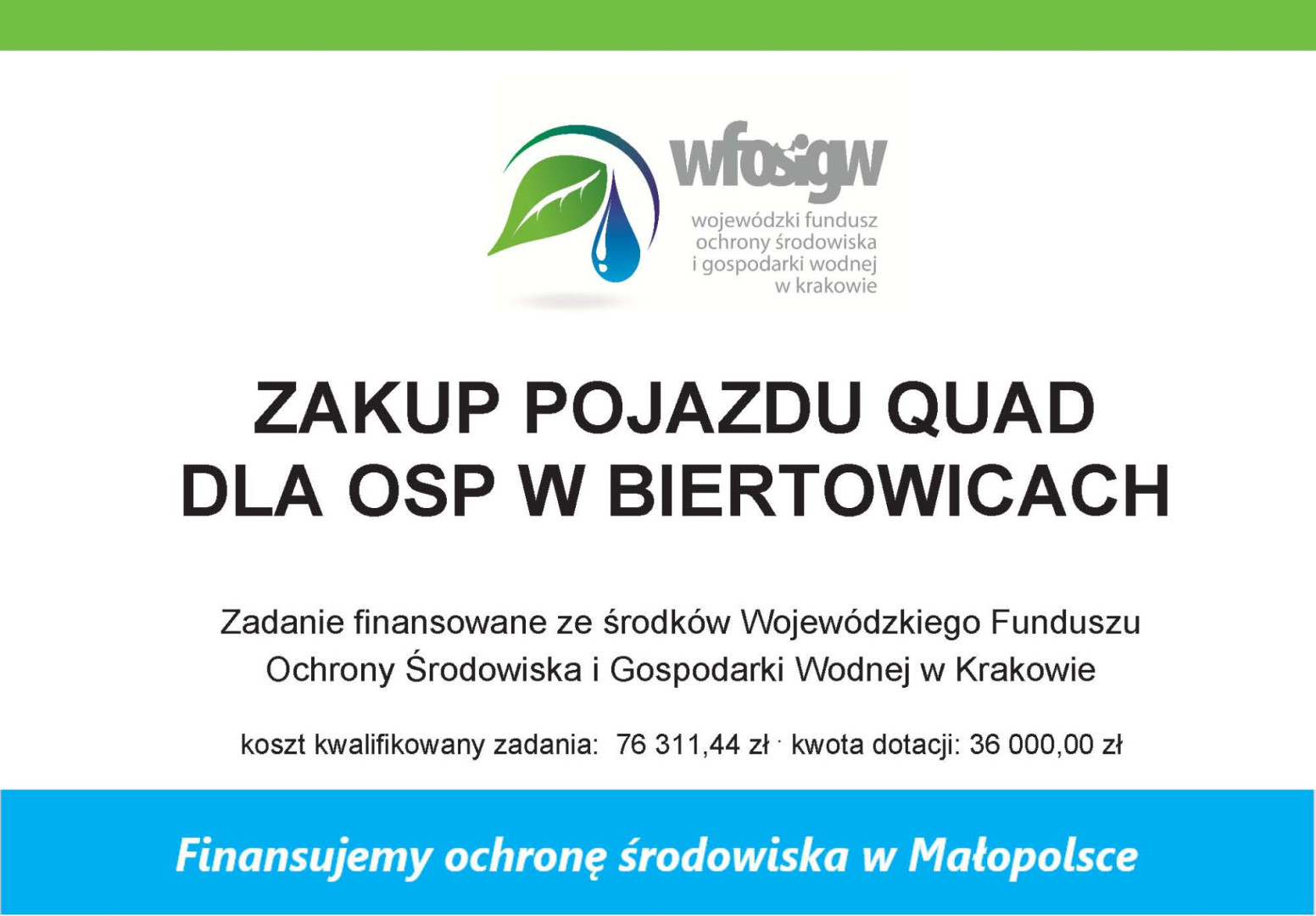 Prezes OSP Biertowice Szymon Duda przywitał wielu znakomitych gości, wśród których znajdował się m.in. Minister Michał Wójcik Honorowy Członek OSP Biertowice. Przedstawiając rys historyczny jednostki podkreślił jak duże znaczenie dla mieszkańców Biertowic i gminy ma pojawienie się nowych pojazdów ratowniczych. Średni samochód ratowniczo – gaśniczy MAN TGM wykonany przez firmę MOTO-TRAK został zakupiony ze środków Samorządu Gminy Sułkowice, Ministerstwa Sprawiedliwości, Urzędu Marszałkowskiego w Krakowie oraz środków własnych. Pojazd typu quad marki POLARIS Sportsman został zakupiony ze środków Fundacji ORLEN oraz Wojewódzkiego Funduszu Ochrony Środowiska i Gospodarki Wodnej w Krakowie.