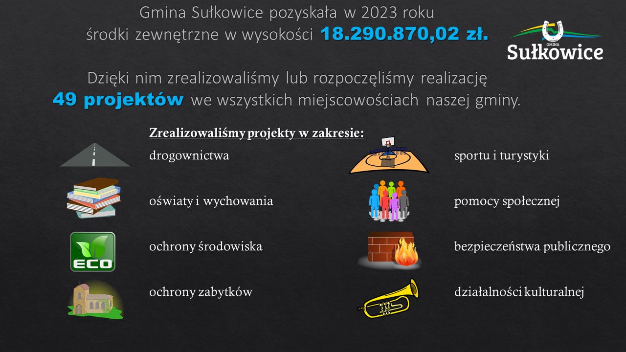 Pozyskane środki zewnętrzne w Gminie Sułkowice w 2023 roku