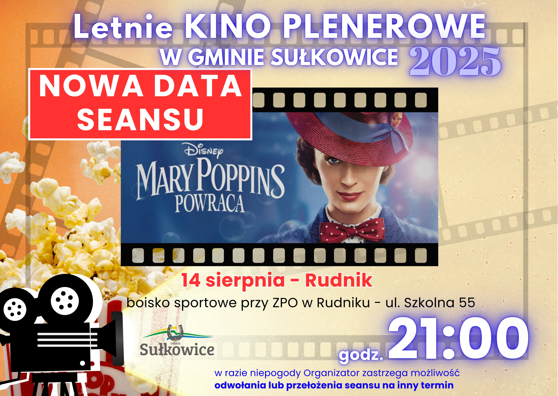 Dołącz do nas i przenieś się w świat czarów z klasykiem „Mary Poppins powraca”. Przygotuj się na niezapomnianą podróż pełną śmiechu, tańca i odrobiny magii! Zabierz rodzinę, przyjaciół i dobry humor – czekamy na Was na świeżym powietrzu!