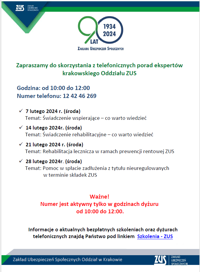 telefonicznych znajdą Państwo pod linkiem Szkolenia - ZUS