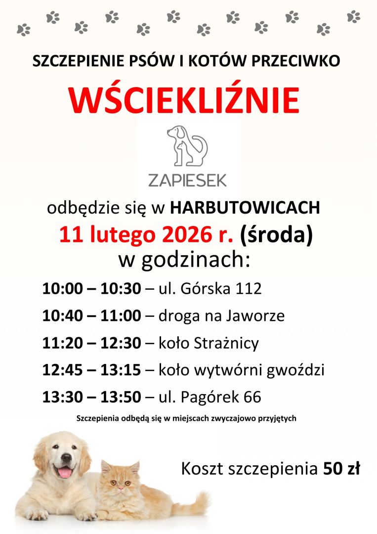 Terminy szczepień psów i kotów na terenie Gminy Sułkowice