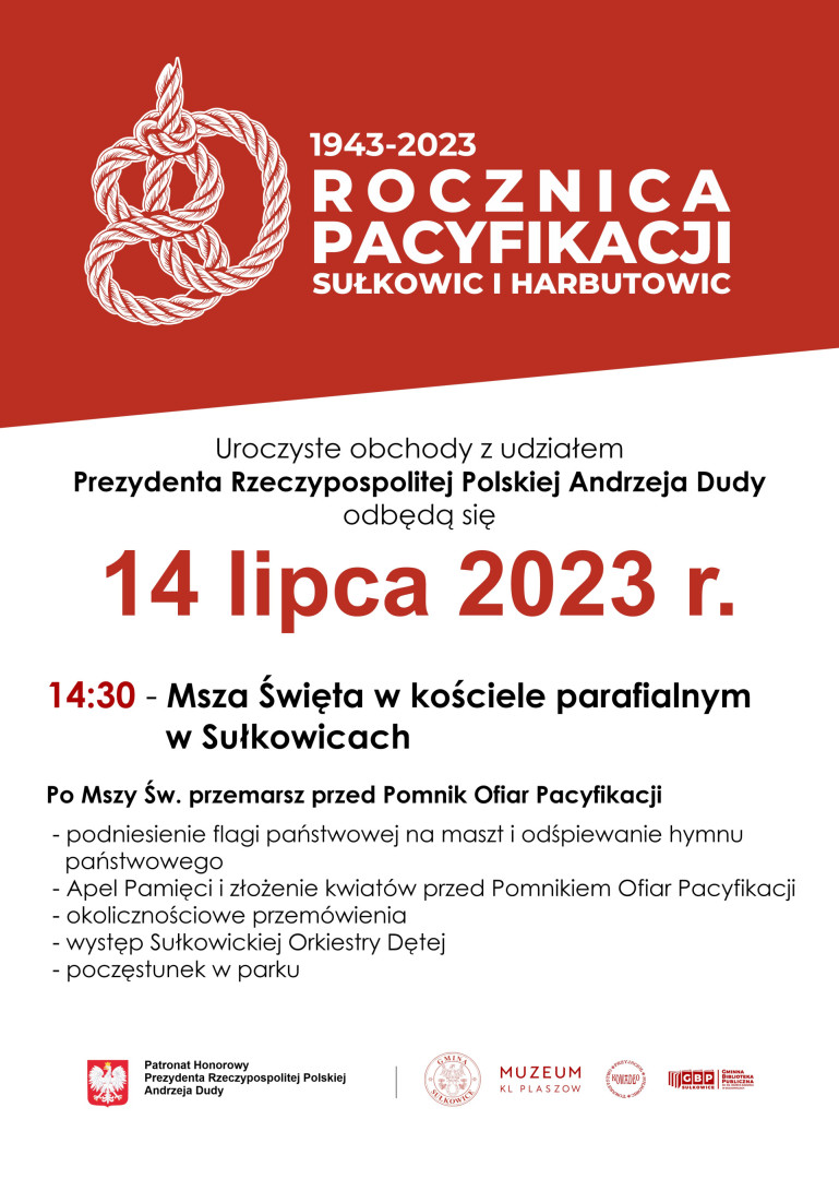 W tym roku przypada 80. rocznica pacyfikacji Sułkowic i Harbutowic. Uroczystość przypominającą okrutną zbrodnię dokonaną przez niemieckich okupantów w 1943 r. obchodzić będziemy szczególnie, bo z Prezydentem Rzeczypospolitej Polskiej Andrzejem Dudą. Będzie to pierwszy raz, kiedy głowa państwa odwiedzi naszą gminę, by wspólnie upamiętnić Bohaterów Ziemi Sułkowickiej.