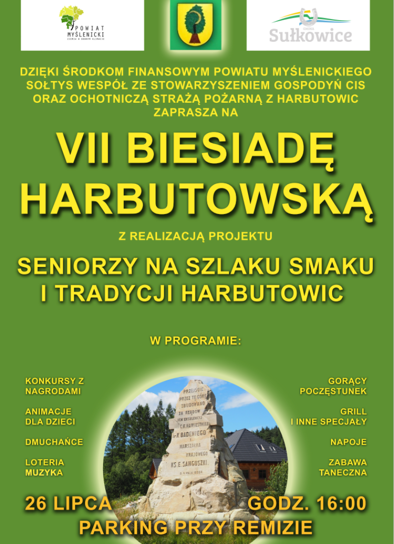 Zapraszamy mieszkańców na VII Biesiadę Harbutowską pn. "Seniorzy na szlaku smaku i tradycji Harbutowic".