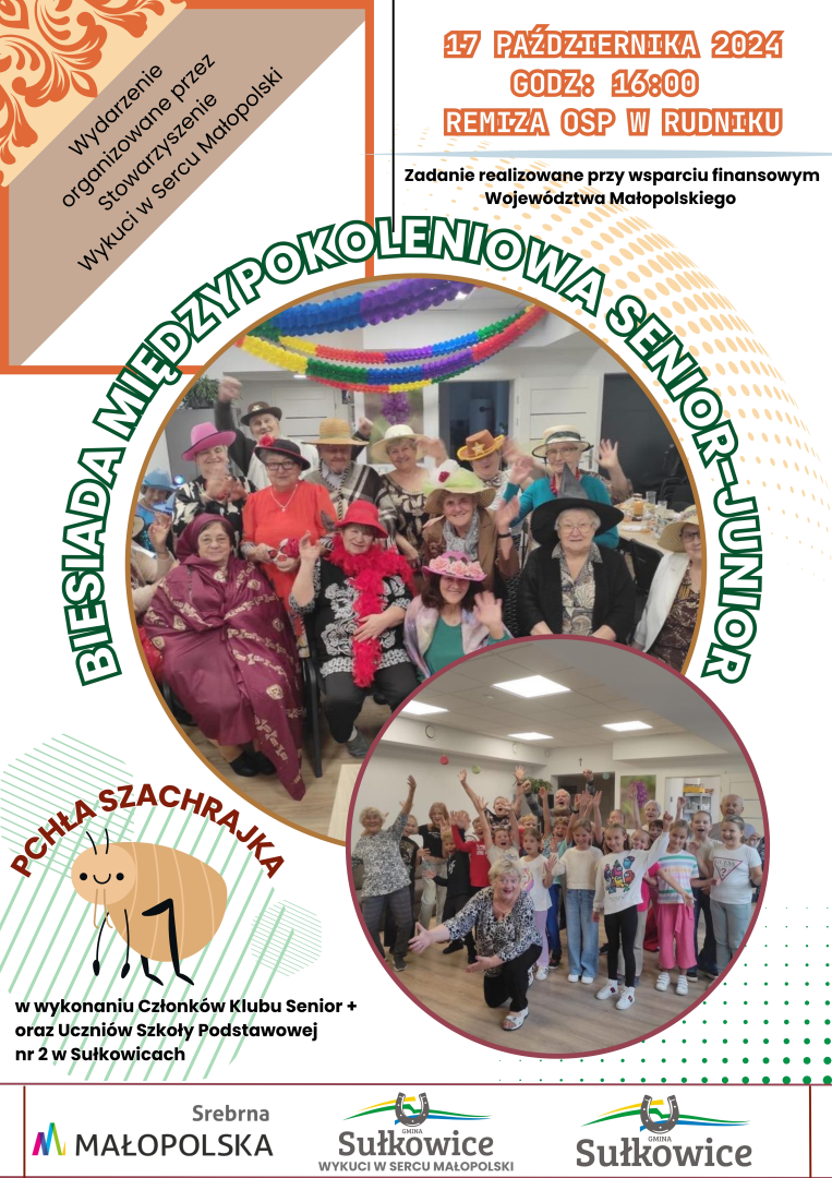 W programie występ pt. "Pchla Szachrajka" w wykonaniu Członków KLUB Senior+ w gminie Sułkowice oraz uczniów Szkoły Podstawowej nr 2 w Sułkowicach