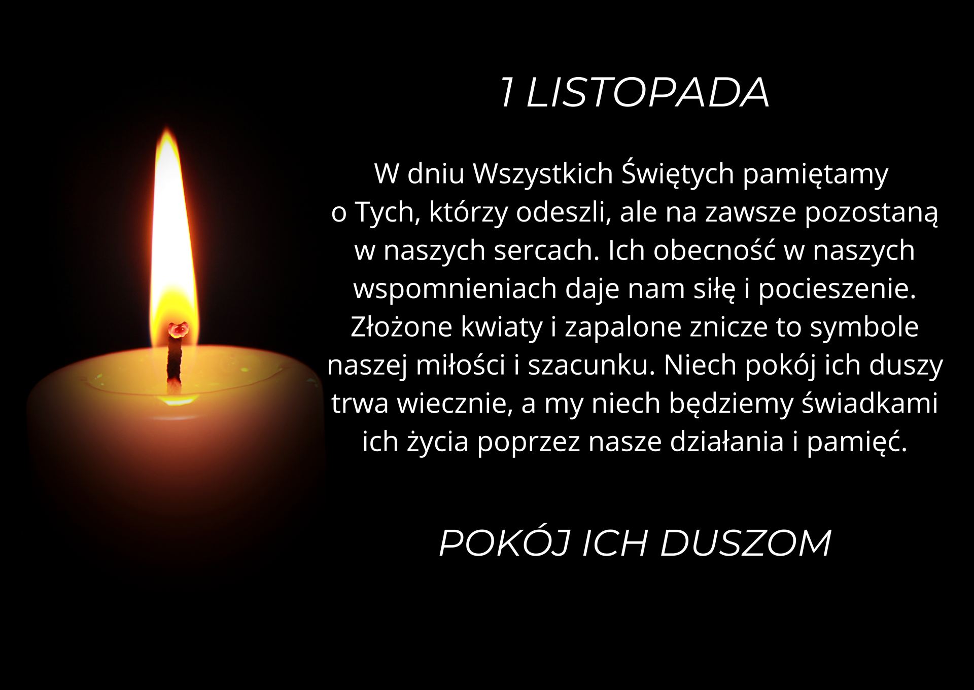 W dniu Wszystkich Świętych pamiętamy o Tych, którzy odeszli, ale na zawsze pozostaną w naszych sercach. Ich obecność w naszych wspomnieniach daje nam siłę i pocieszenie. Złożone kwiaty i zapalone znicze to symbole naszej miłości i szacunku. Niech pokój ich duszy trwa wiecznie, a my niech będziemy świadkami ich życia poprzez nasze działania i pamięć.