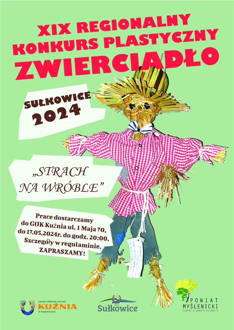 Zapraszamy Państwa do udziału w XIX Regionalnym Konkursie Plastycznym ,,Zwierciadło'', którego tegorocznym tematem jest "STRACH NA WRÓBLE".