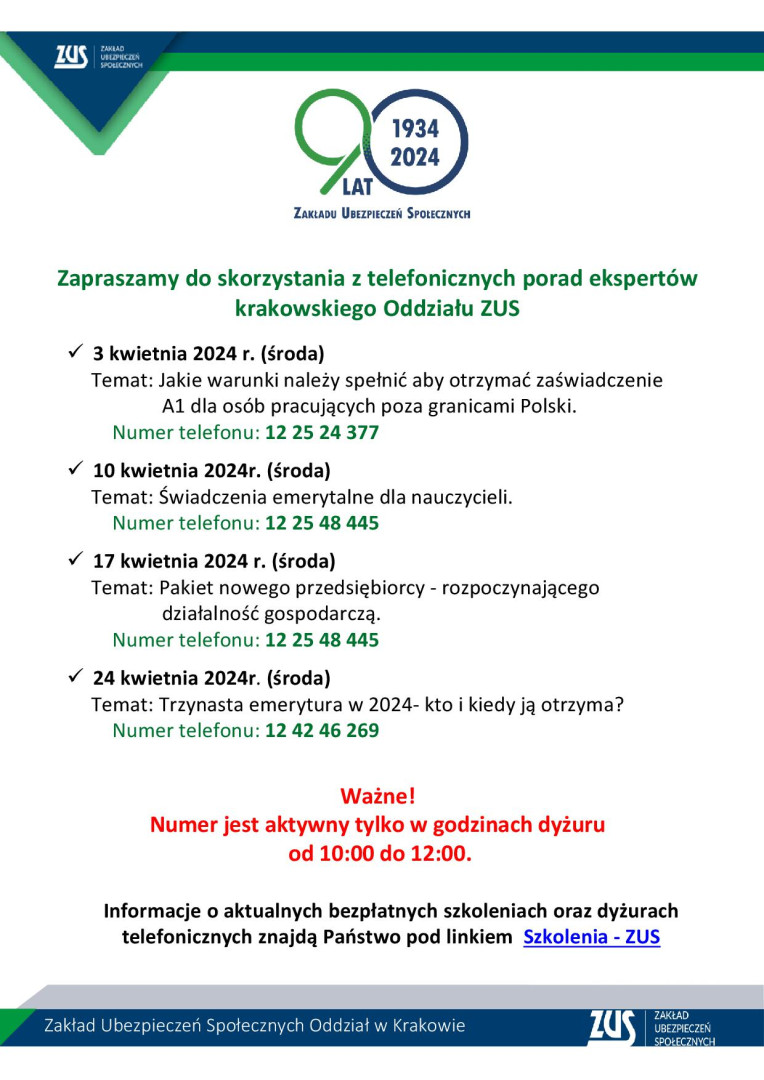 telefonicznych znajdą Państwo pod linkiem: Szkolenia - ZUS