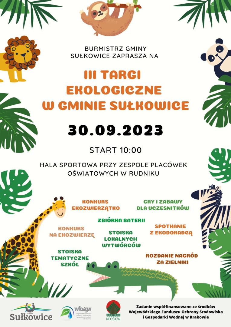 Serdecznie zapraszamy na III Targi Ekologiczne, które odbędą się w dniu 30 września 2023 r. w hali sportowej przy Zespole Placówek Oświatowych w Rudniku.