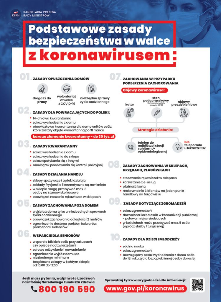 Podstawowe zasady bezpieczeństwa w walce z koronawirusem: