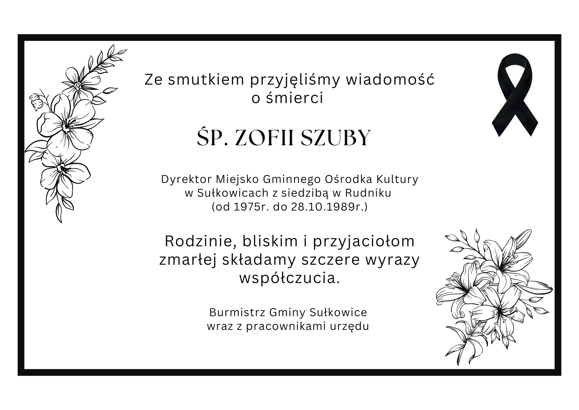 Zmarła ŚP. Zofia Szuba - była Dyrektor Gminnego Ośrodka Kultury w Sułkowicach z siedzibą w Rudniku