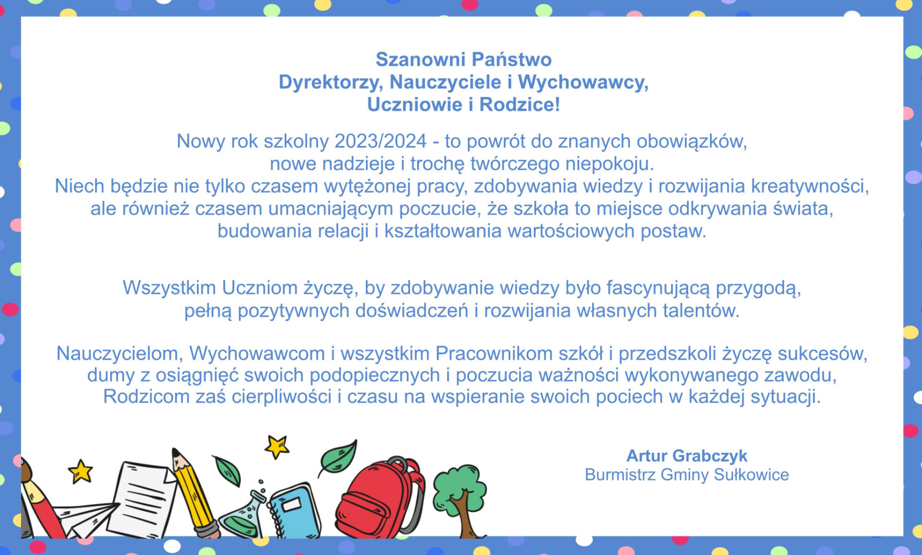 Życzenia z okazji rozpoczęcia nowego roku szkolnego